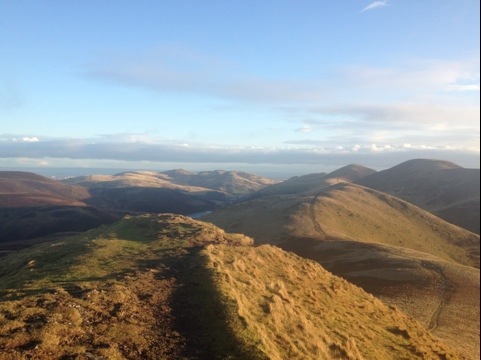 On top of East Kip the views were excellent though with the wind so strong it was hard to take them in. Stepping just 2 metres down was like walking inside. The wind was being blocked and the warm sun could do it’s work.