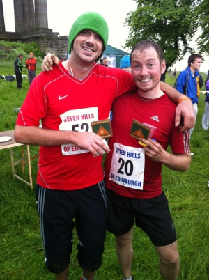 Reaching the top of Blackford hill, there was my Mate, having a drink! He turned round and caught my muddy face and we both gave a big man hug!