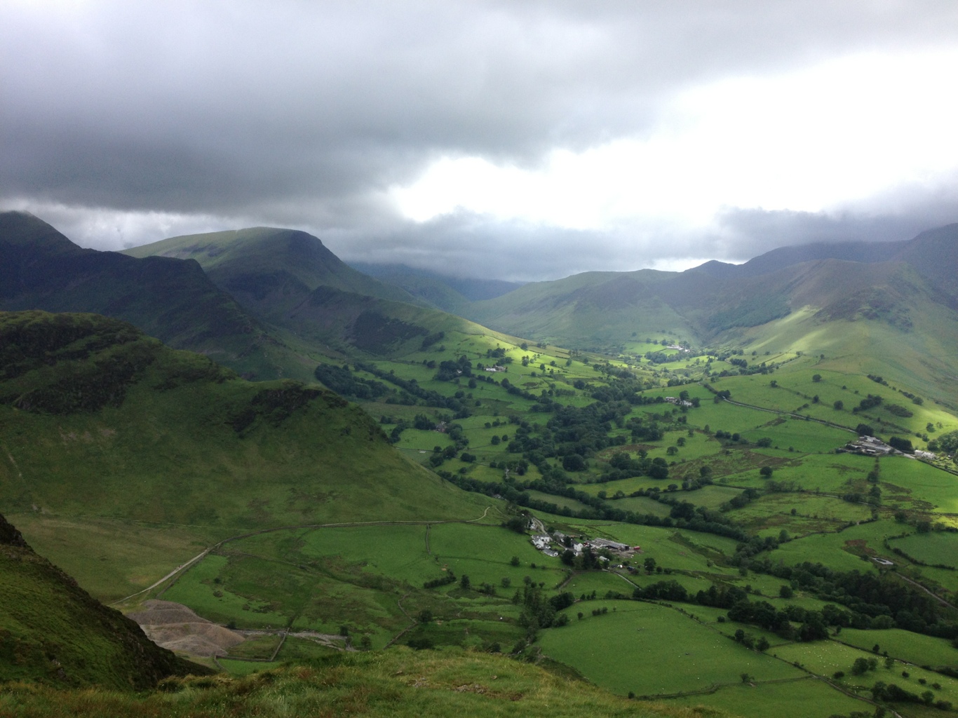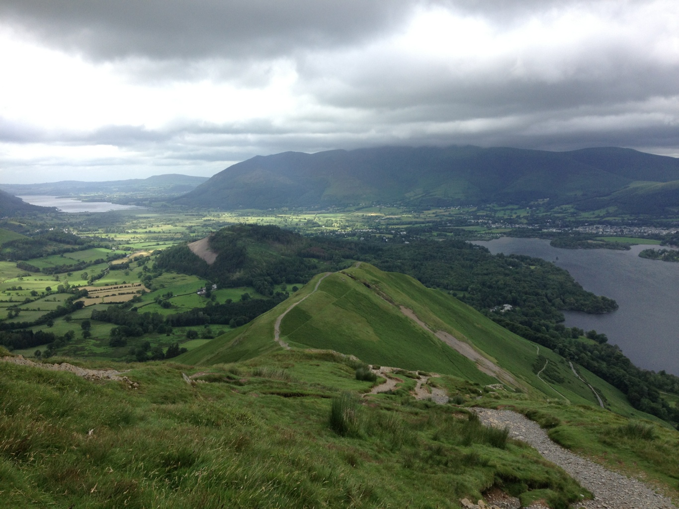 We arrived in the lakes in a deluge of rain and wind. This was to be a theme of the break. The next day, unperturbed by the continuous rain we donned our waterproofs as did a half days hike up Coledale towards the pike. We arrived back to our digs saturated after hiking through bog, path and road in thunderstorms. We decided to retire the hiking boots for the holiday. At least we got out I thought and in the back of my mind I had Catbells milling away.