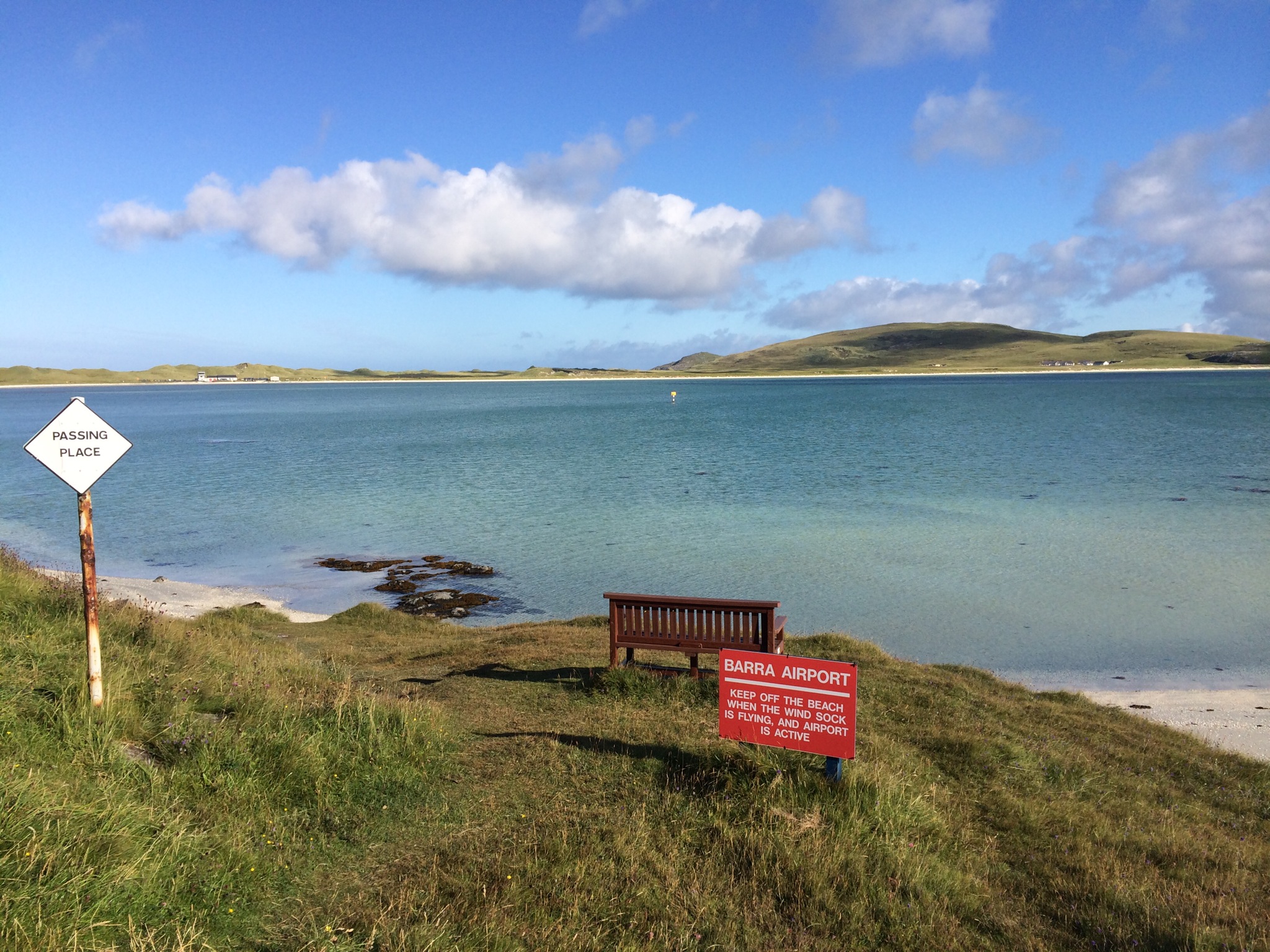 In fact we made so much ground that we ended up being an hour and a half early for the ‘early’ ferry. The wind is clearly doing us good. We decided to head passed the ferry turn off and toward the airport. Barra airports’ runway was on the beach which currently is under a few feet of water. The only things highlighting this fact were the signs warning you that when the windsock was flying keep off the beach.