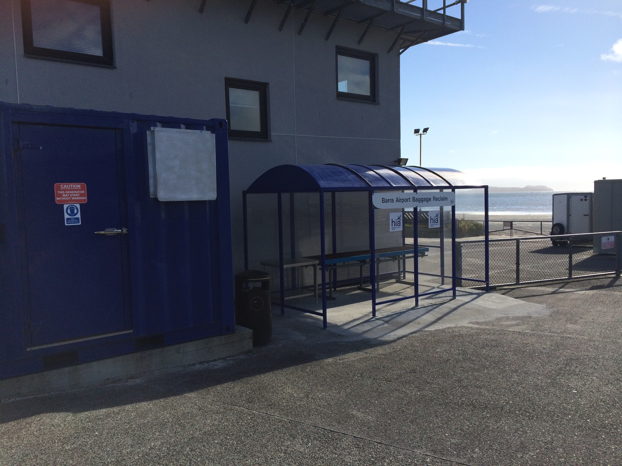 Cycling passed the airport building in a sort of flyby to check the place out instead of being nosey and actually stopping we noticed the smallest baggage reclaim ever, basically a bus stop with a table inside whose top was just rollers. No automation here and practical so as to keep the weather out.