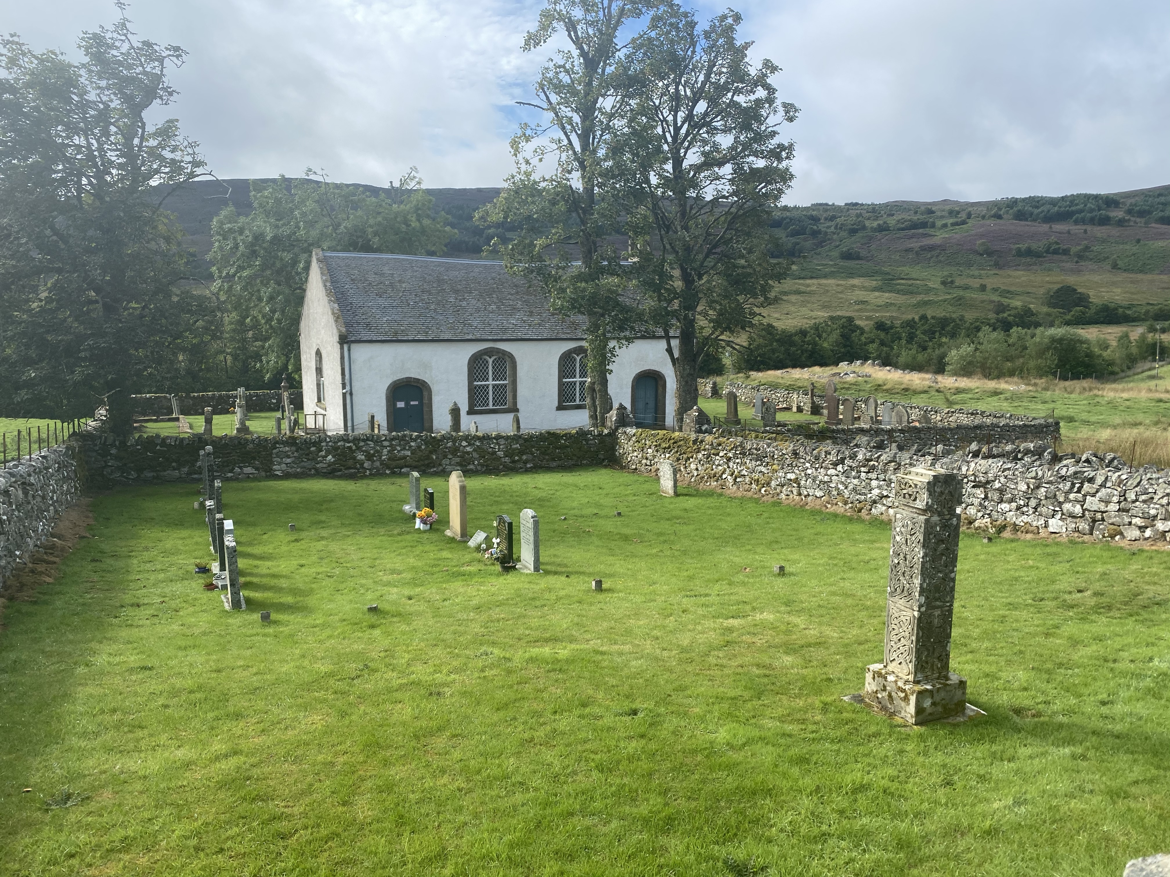 Croick marks the end of the tarmac for now. I paused to look around the old church here. Built by Thomas Telford, it was a place of sanctuary as the clearances cleared the Glen. Those who fled stayed here and inscribed their names on the Church’s east window.