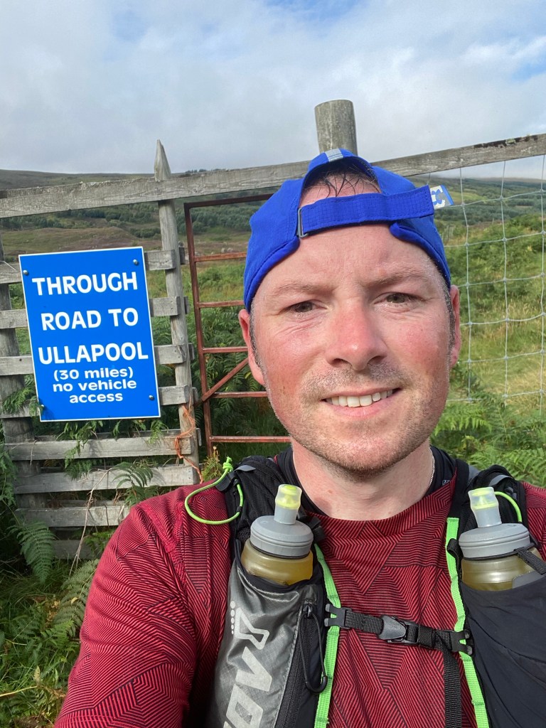 The head was banging, and the sun was coming out. It wasn’t a good combination. With 25km left I decided to take it easy and conserve sweat and energy. I ran when I could but opted to fast hike mainly. The scenery was amazing but I was annoyed to be dehydrated. Each Ford I crossed was dry and no trickle. I opted to get water from the loch against my better judgement. I waded a few metres to some deeper water and took a bottle full. There weren’t any visible floaters but I was uneasy with it.