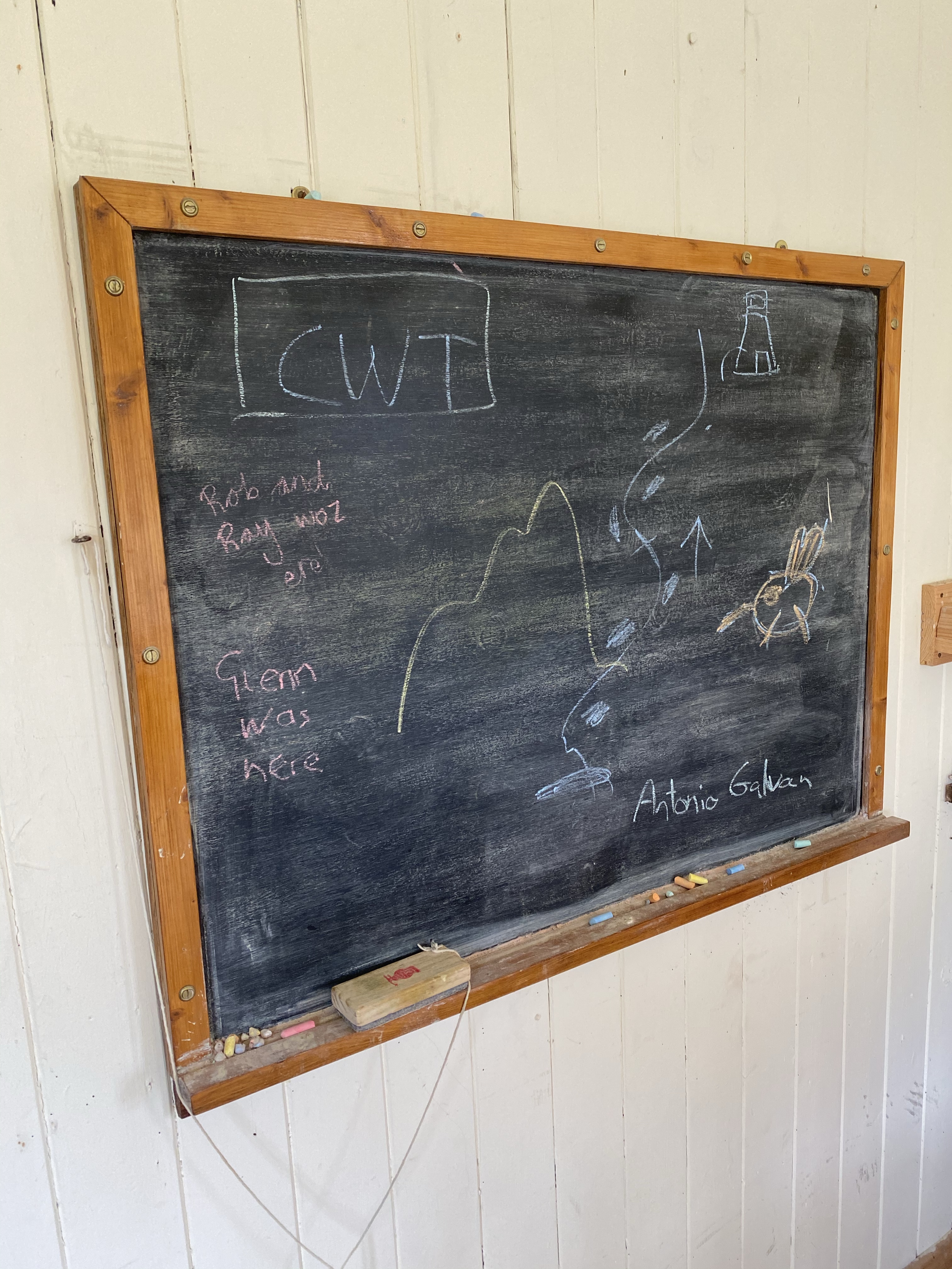 There’s a bothy here, the Old Schoolhouse which has been kept with old desks and chalk board too. I couldn’t resist declaring I was there but chose to use proper English to avoid getting lines.