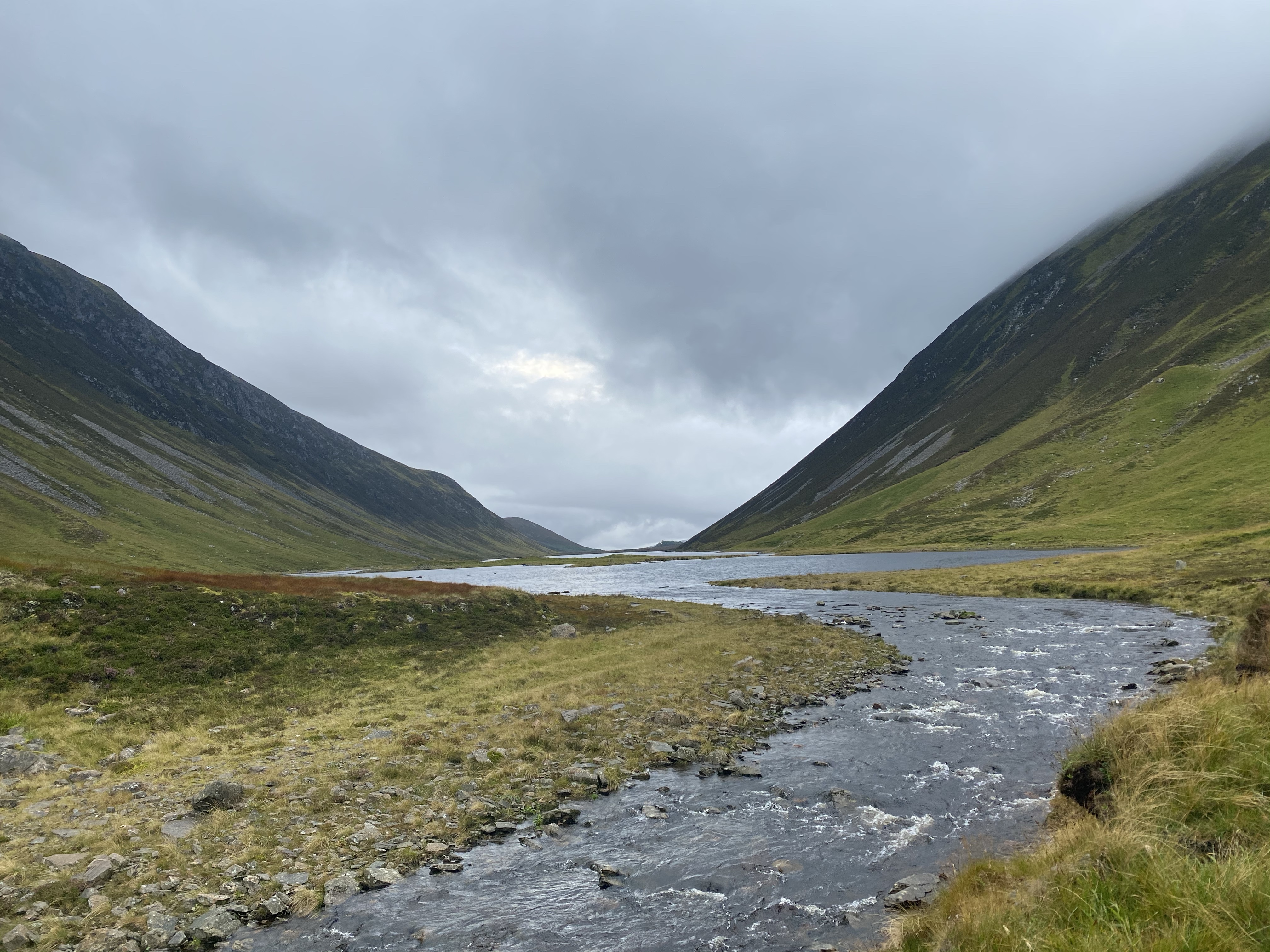 It was raining all the way up the A9 from Edinburgh. Heavy claggy rain. Arriving in Kingussie we headed for Glen Tromie, if you’re not good with roads, there’s a decent off road cycle path to follow. We opted for the road though where huge puddles had formed from the rain. At a road bend, we turned right onto the track to Glen Tromie. This wide track ran for some way following the river Tromie to Gaick. We only passed 3 hikers at the start hiking out looking quite miserable. The rain had stopped by the time we’d reached the dam, and the track had turned to tarmac for a while. Soon after the road turned to track again and ahead Gaick Lodge. We stopped to eat something, staring at the hills surrounding us, contemplating how long it would take to reach the tops.